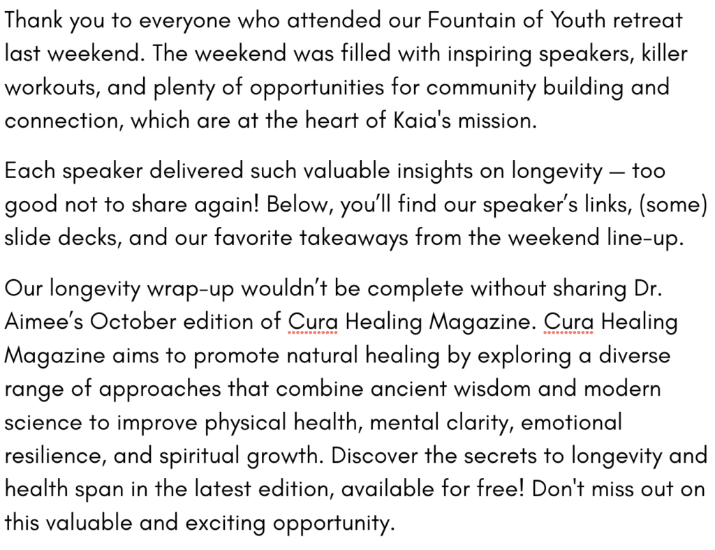 The Kaia training is a simple, progressive program designed for women of all ages and all fitness levels. Whether you are a walker, jogger, or runner, you will be able to join this program and move at your own pace. Research has shown that even 20 to 30 minutes of running (two to three times per week) is enough to help you lose or maintain weight and improve many other important health markers, i.e. your cholesterol, blood pressure and insulin response.